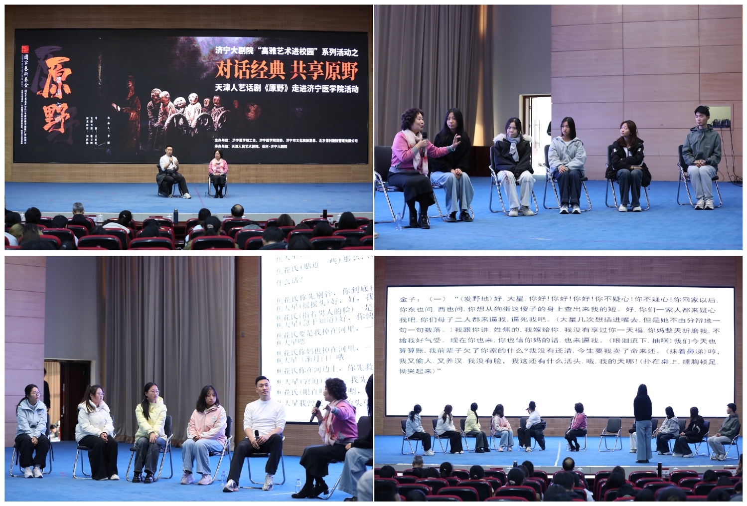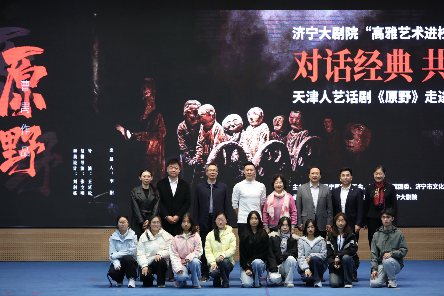 为深化美育教育实践,丰富校园文化生态,搭建高雅艺术与思政教育融合桥梁,11月25日,校工会联合济宁大剧院邀请天津人民艺术剧院经典话剧《原野》主创团队进校园,开展艺术分享活动,让师生沉浸式感受舞台艺术魅力与经典作品的永恒生命力。学校党委副书记、宣传部部长张贤雷,党委委员、统战部部长陈晓东出席了活动。